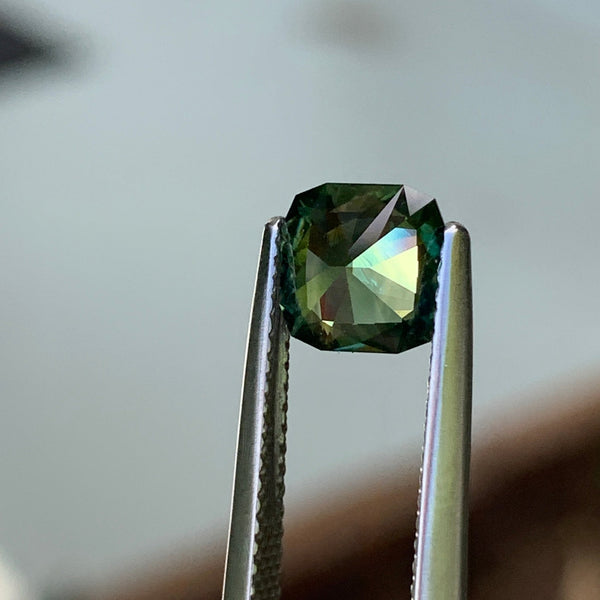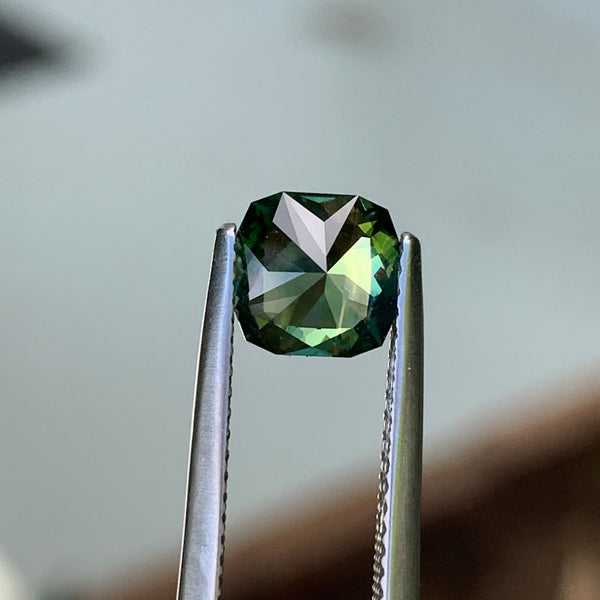 Quantity: 1Weight: 1.55ctGem Type: SapphireShape: CushionSize: 6.7x6.7x4.0mmColor: Green PartiClarity: EyecleanCut: Mixed CutOrigin: AustraliaTreatment: UnheatedHardness: 9 Mohs ScaleCertificate: Not Included